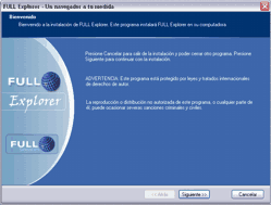 pantalla, muestra información sobre la instalación. Para comenzar a instalar FULL Explorer