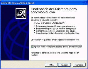 casilla "Agregar en mi escritorio un acceso directo a esta conexión" si
