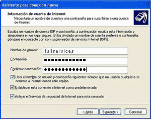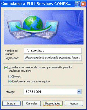 en el icono de su nueva conexión y cuando le pregunte nombre de usuario y
