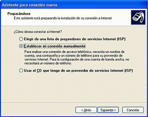 elegir la opción "Establecer mi conexión manualmente" y volver a hacer