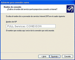 escribir el nombre de la conexión. Tipee FULL Services CONEXION y